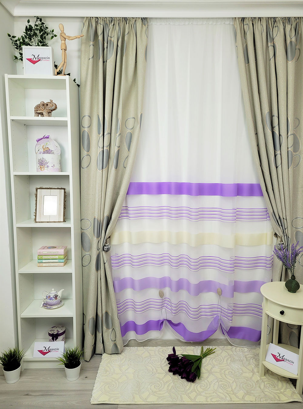 Draperie crem/gri cercuri