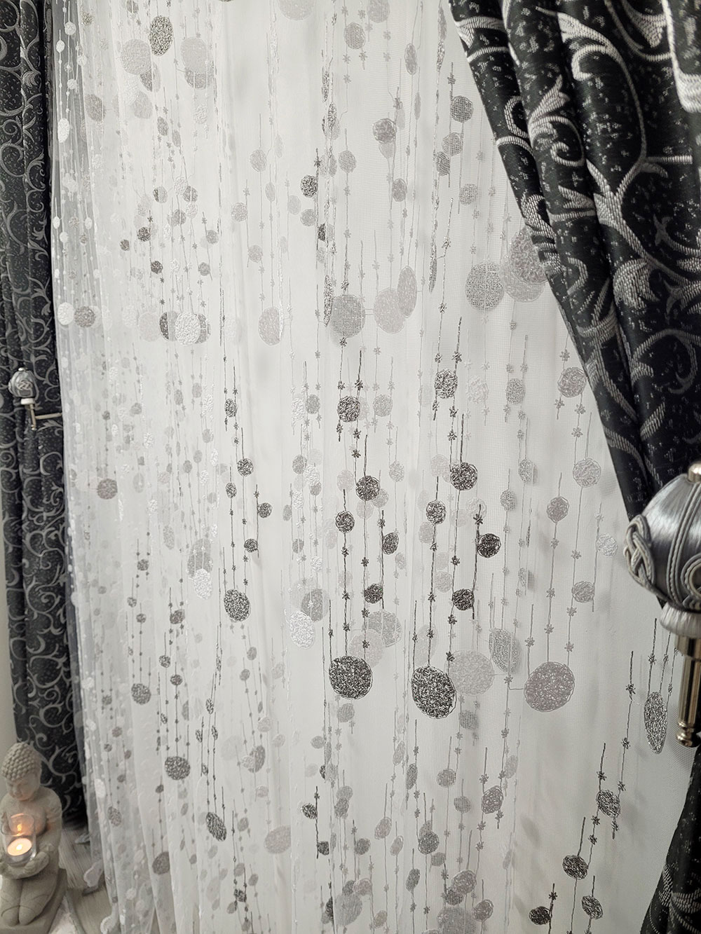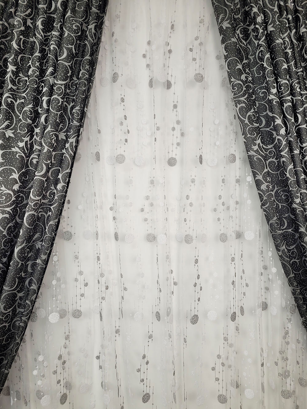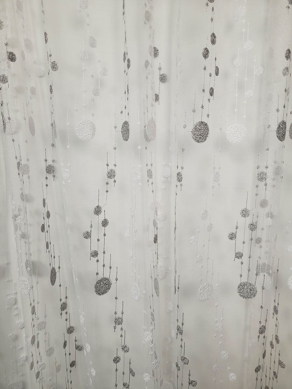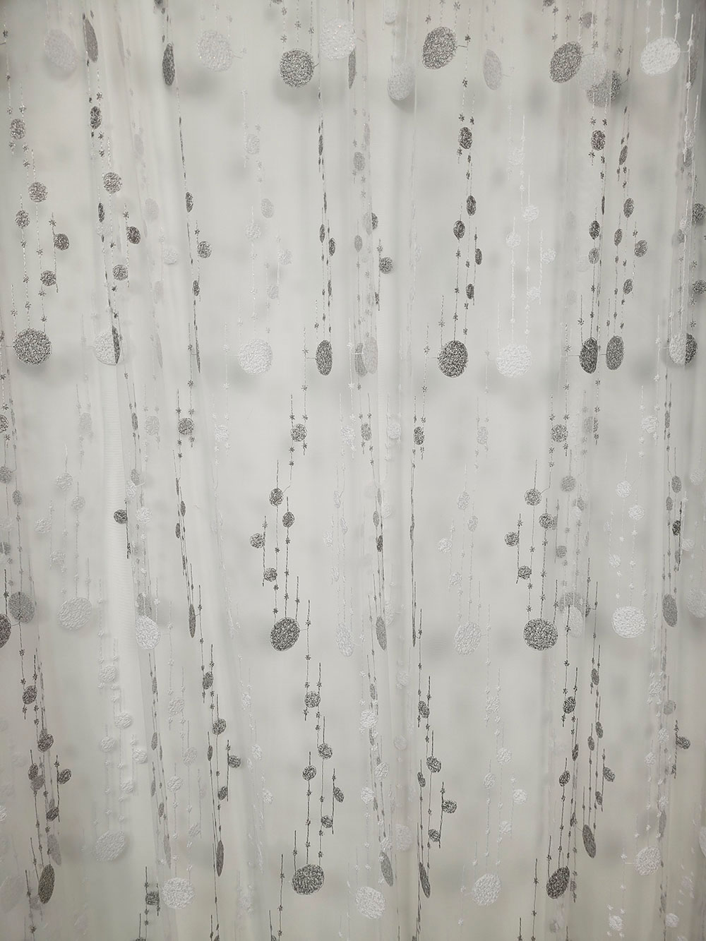 Perdea alba cu buline gri, cu carlig