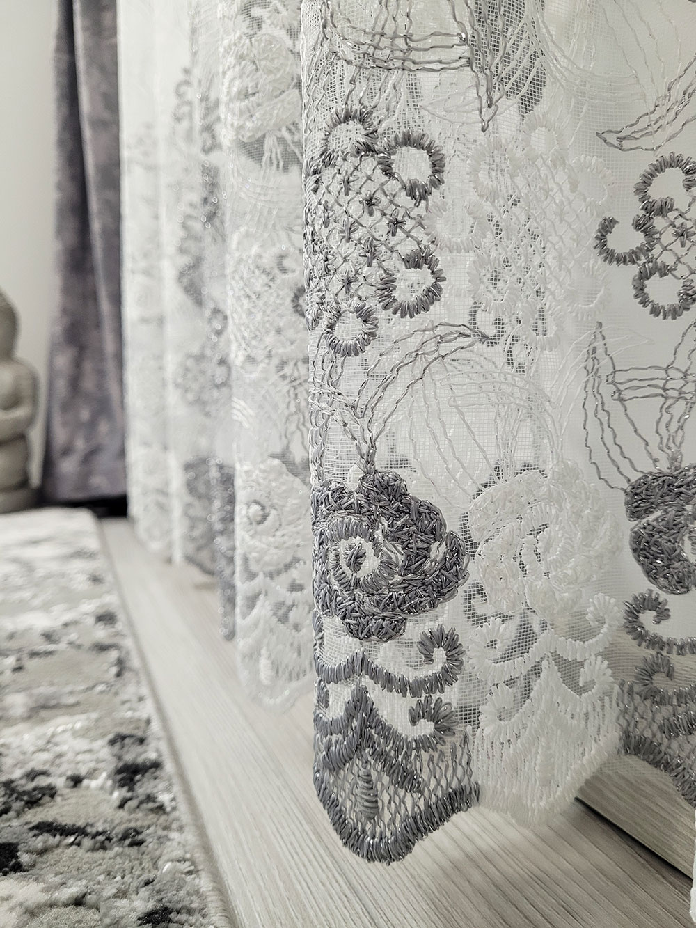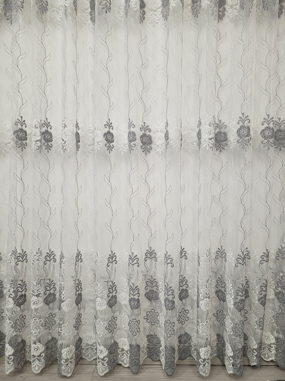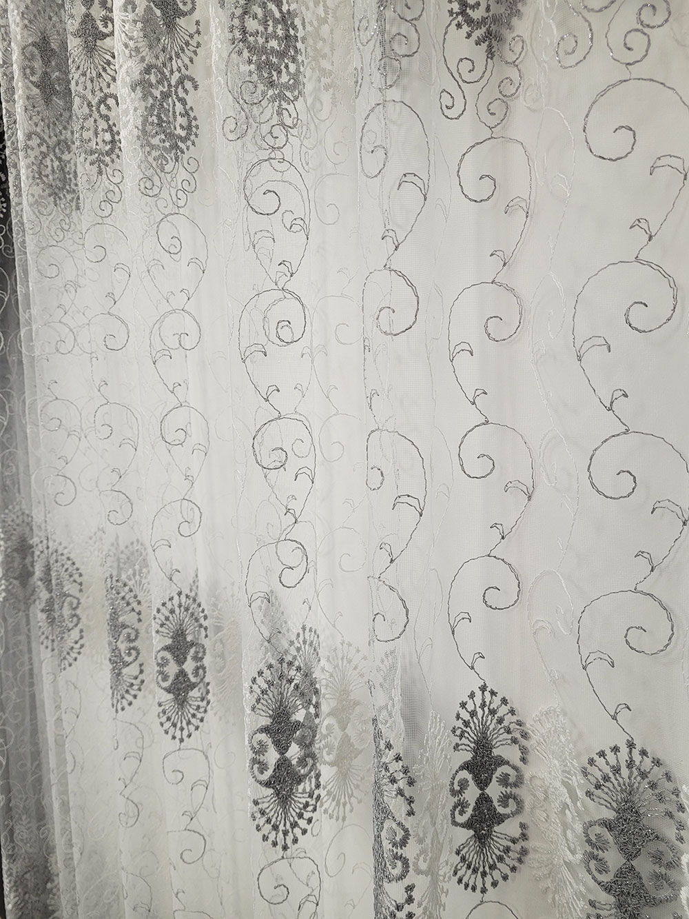 Perdea alba cu model Grey and White oriental