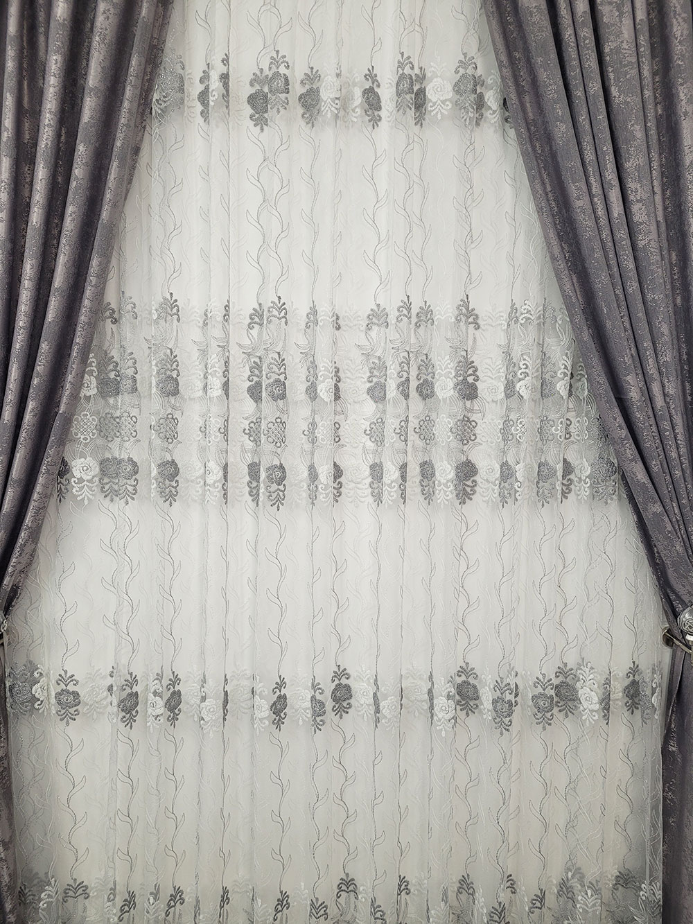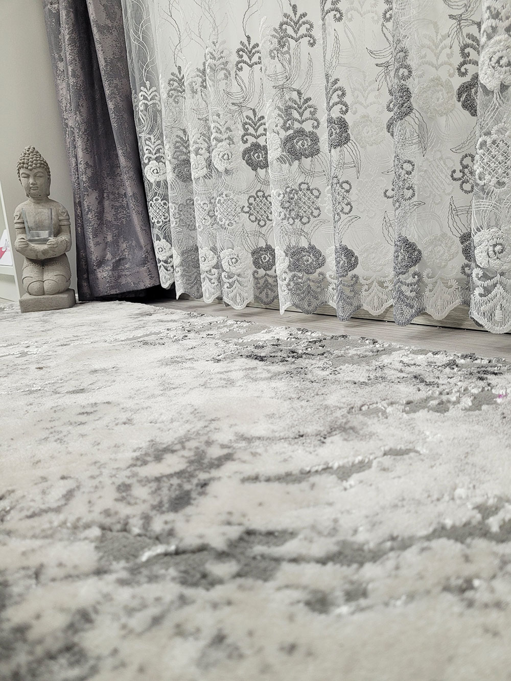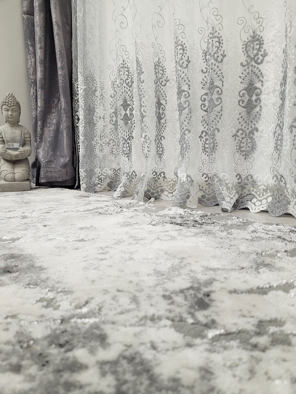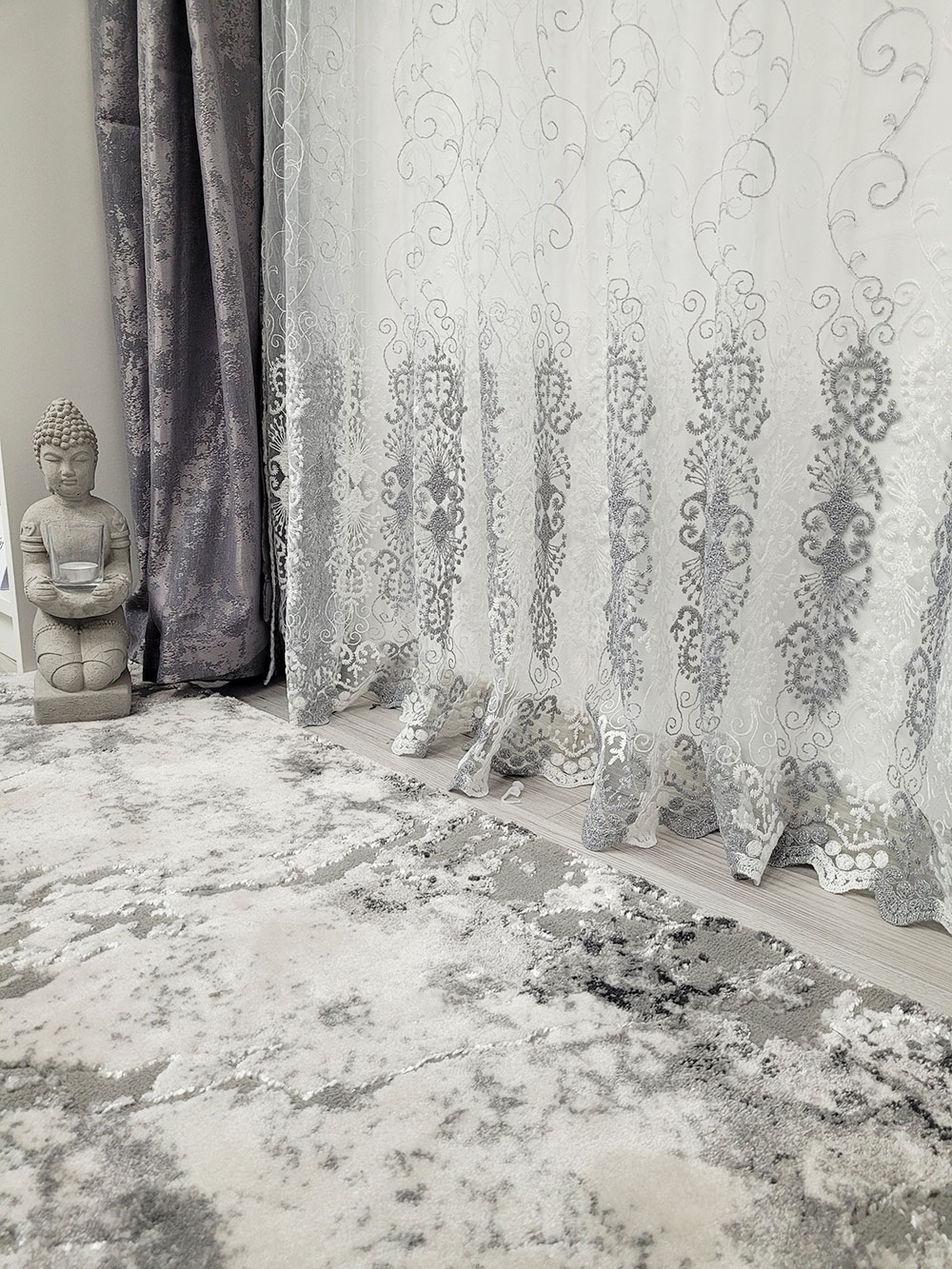 Perdea alba cu model Grey and White oriental