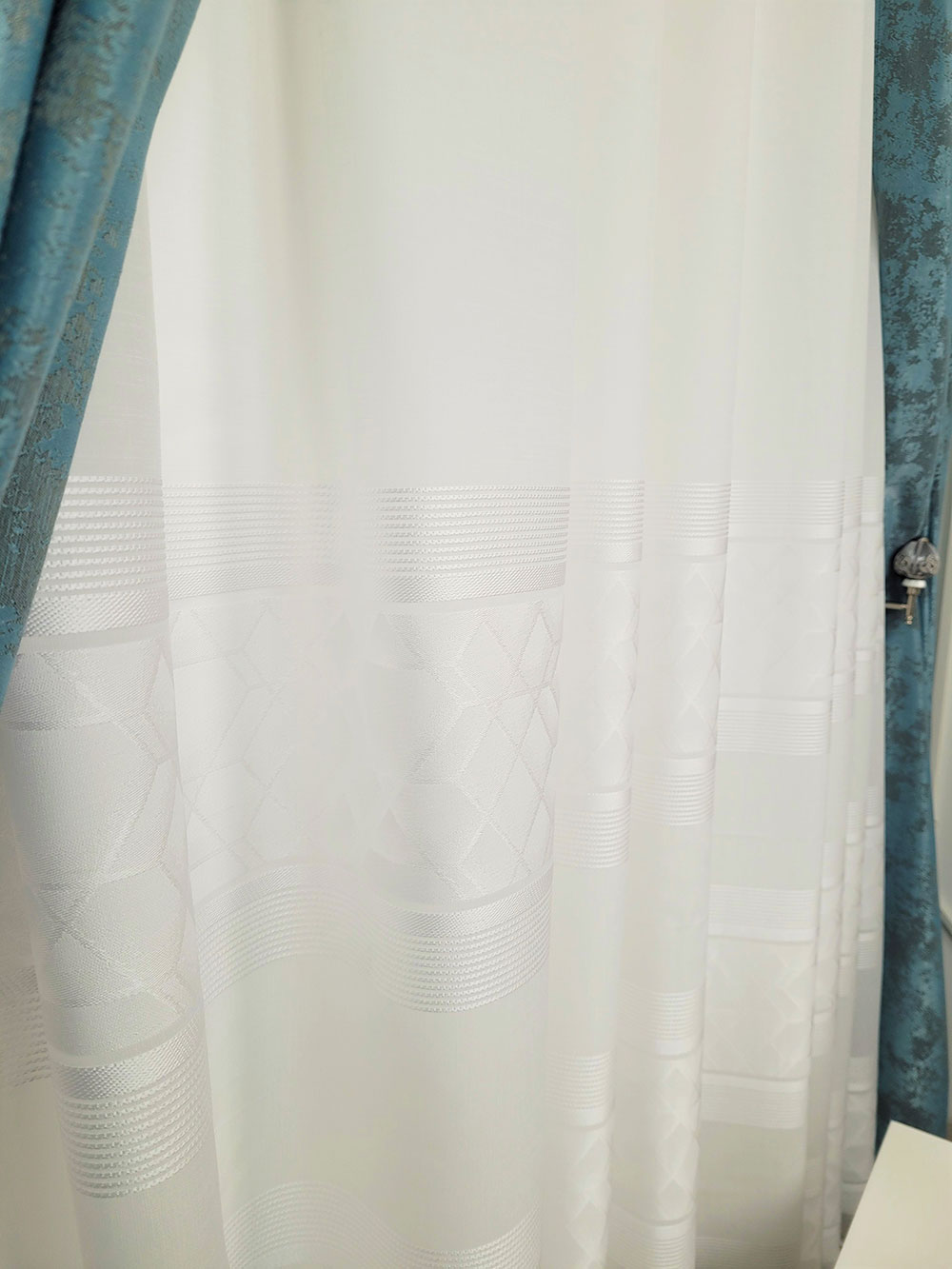 Perdea alba nature geometric