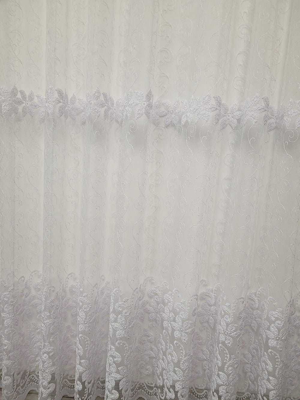 Set draperie si perdea, Grey and White flowers